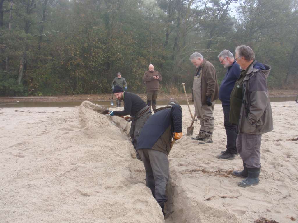 Under lördagen konstaterades att vattnet inte kom ut av egen kraft utan översvämningen tilltog. Läget hade blivit akut och något måste göras. På söndag förmiddag samlades medlemmarna vid mynningen för att göra ett försök att få igång flödet. Ett dike skottades upp genom sandvallen och ned till stranden. Efter några timmas idogt grävande kom flödet i gång och vattnet började gräva sig ned genom sanden. Flödet ökade allt mer och några timmar senare var mynningen helt öppen. På eftermiddagen hade vattennivån sjunkit till normala nivåer och YFS fiskevilla var räddad. Den omgivande marken med förråd, vägar och parkeringar hade torrlagts. Fisken hade åter fått fri lejd upp i ån och fiskvandringen ökade rejält vilket registrerades i fiskräknaren.